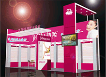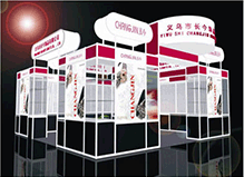 其特點是型材和木質結構相結合。設計旨在以展具的形式美和材質美來襯托產(chǎn)品。其效果新穎美觀。 Booth set up with aluminium alloy frame material and wood;Both advantages of the two kinds of materials are jointly taken to meet the edmands of the clients. |